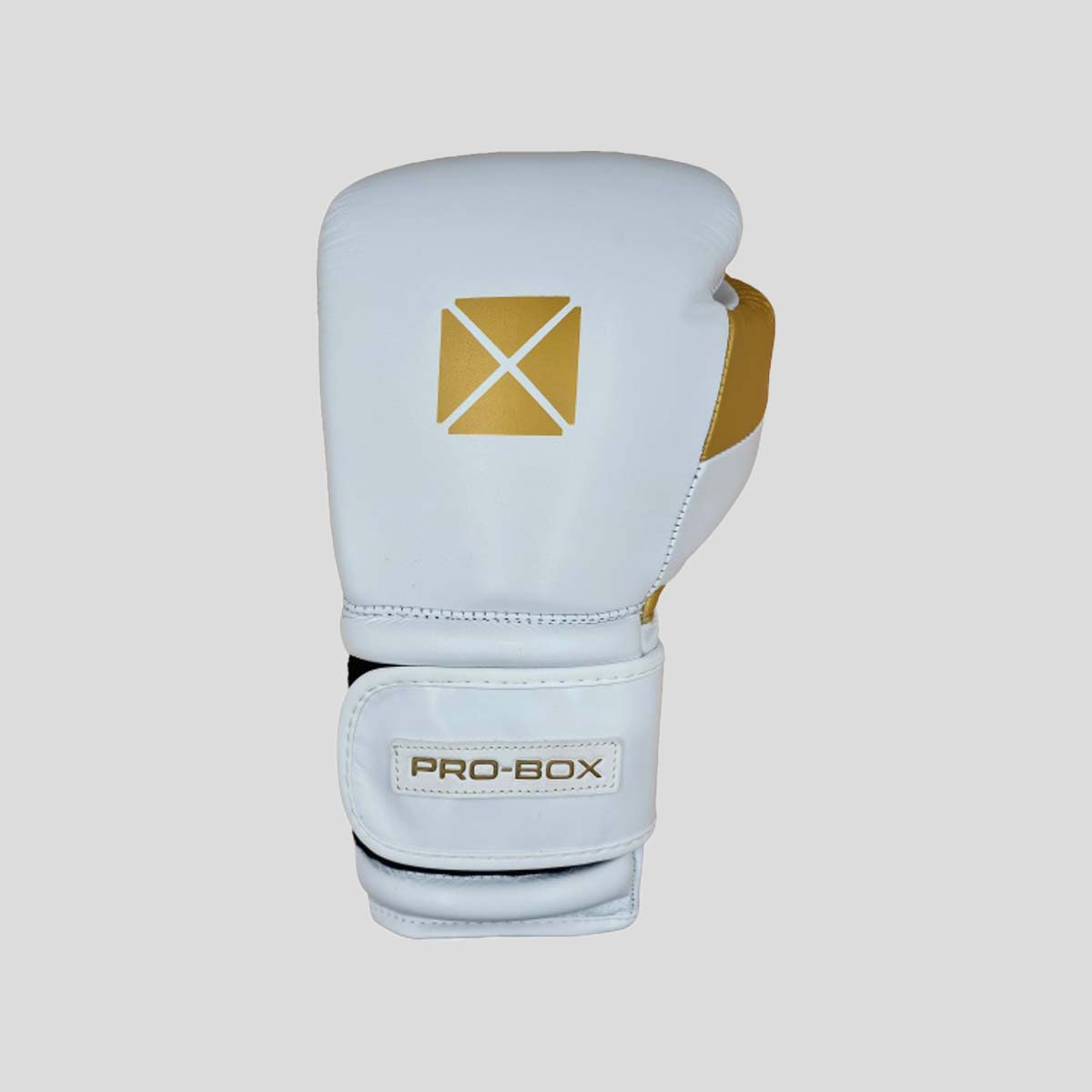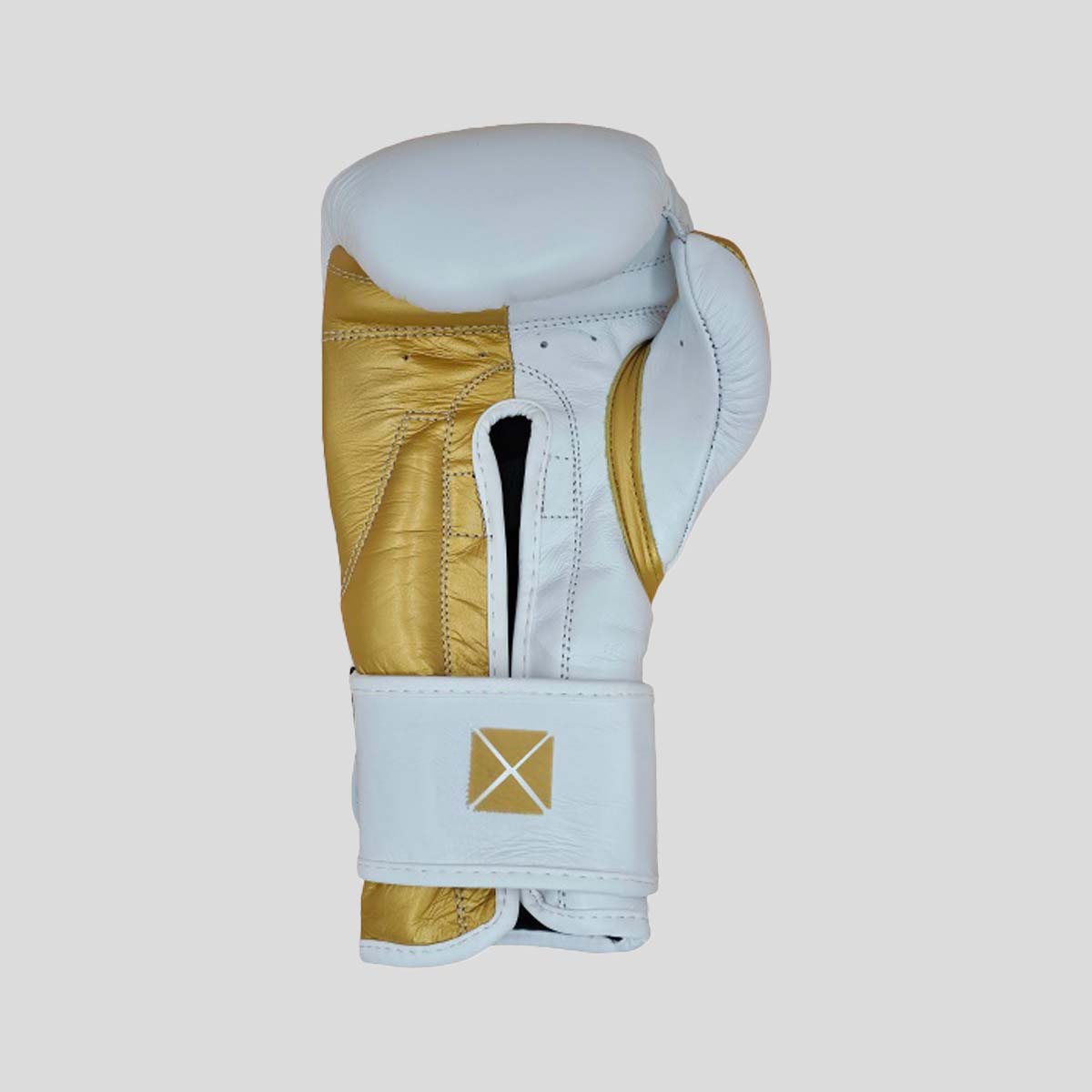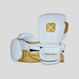 قفازات ملاكمة للملاكمة من الجلد المؤيدة للربع الأبيض/الذهب (جديد)