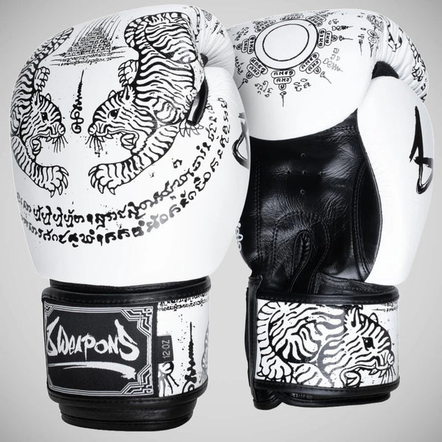 The Sak Yant Tigers boxing gloves from 8 WEAPONS are the perfect choice for demanding training sessions on a sandbag, pads or with a partner. The gloves have a SAK YANT look that is reminiscent of Thai tattoos. It was specially developed for Muay Thai, kickboxing and boxing and offers the best performance. Made from high-quality genuine leather, it is characterized by exceptional durability even with intensive use.