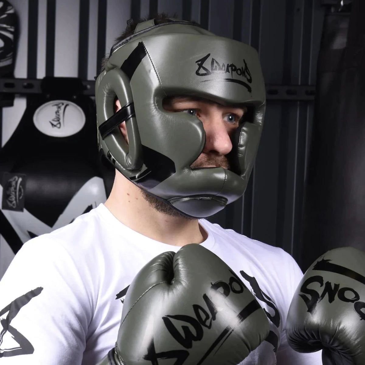 The Olive/Black 8 Weapons Unlimited Head Guard is your ultimate companion, designed to stand between you and excessive impacts and cuts. Get ready to throw those punches and kicks with unshakable confidence, knowing your noggin is well-guarded.