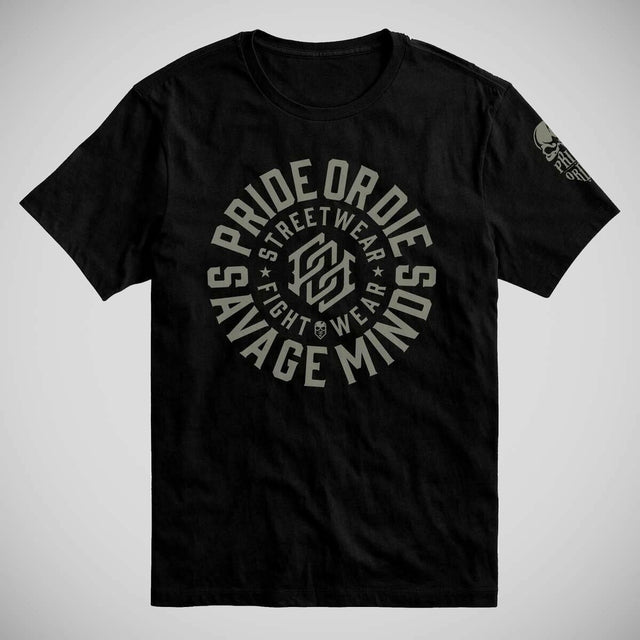 Introducing the PRiDEorDiE Savage Minds Black T-Shirt. This isn't just apparel; it's a symbol of a worldwide community of fighters and combat sports aficionados.