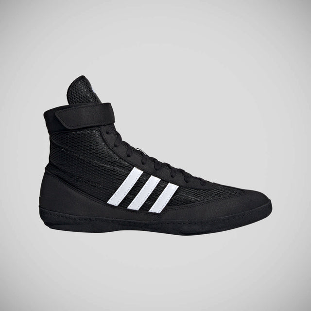 Introducing the new breathable single-layer mesh body wrestling boot from Adidas, made with suede leather and synthetic leather for a perfect fit. It features a "fits like a sock" design, with flexible, supportive TPU stripes and an integrated side panel "IntegralSupportStrap" for additional support. The split-suede outsole overlays provide just the right amount of spin on the mat for dynamic movement, while the internal, die-cut EVA midsole helps maintain the perfect attack stance for wrestling.