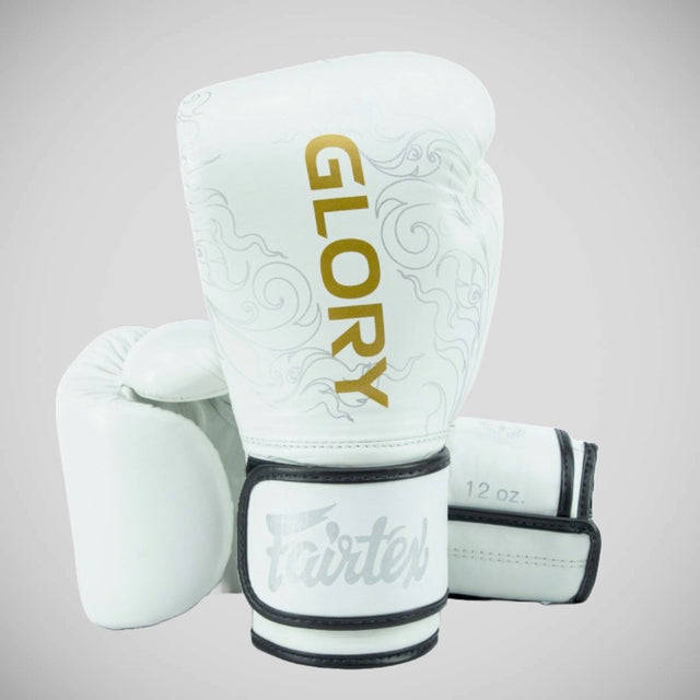 Einführung der White Fairtex BGVG3 X Glory Haken und Loop -Befestigungsboxhandschuhe, die unter offizieller Glory Lizenzierung von Fairtex entworfen wurden. Diese mit Premium thailändischen Leder gefertigten Handschuhen bieten Haltbarkeit und Leistung.