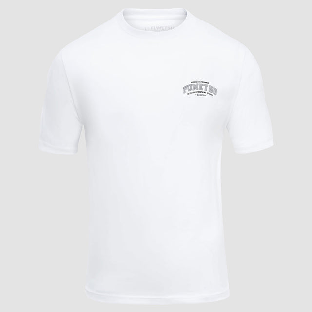 Brandneu von Fumetsu Das Fumetsu-Varsity-T-Shirt ist Teil ihres erfolgreichen Bereichs ohne GI-Bekleidung. Das T-Shirt verfügt über ein Fumetsu-Varsity-Logo als Front-Taschen-Design und ein volles Rückendesign. Das Design basiert auf einem amerikanischen College -Design und ist perfekt, um auf dem Weg zum Training oder auf dem Weg zu tragen. Das Material ist ein weiches, komfortables und atmungsaktives Polycottonmaterial mit einer übergroßen Passform.