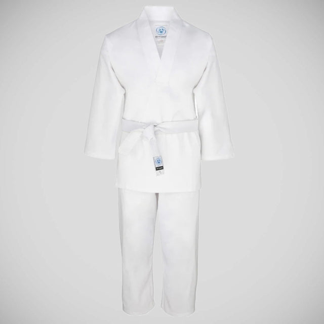 Einführung der heftigen und stilvollen weißen Bytomic Kids V-Neck-Uniform, ein Muss für aufstrebende junge Krieger in der Welt der Kampfkünste. Egal, ob es sich um Karate, Taekwondo oder Judo handelt, diese vielseitige Uniform ist perfekt für verschiedene Kampfkunstdisziplinen.