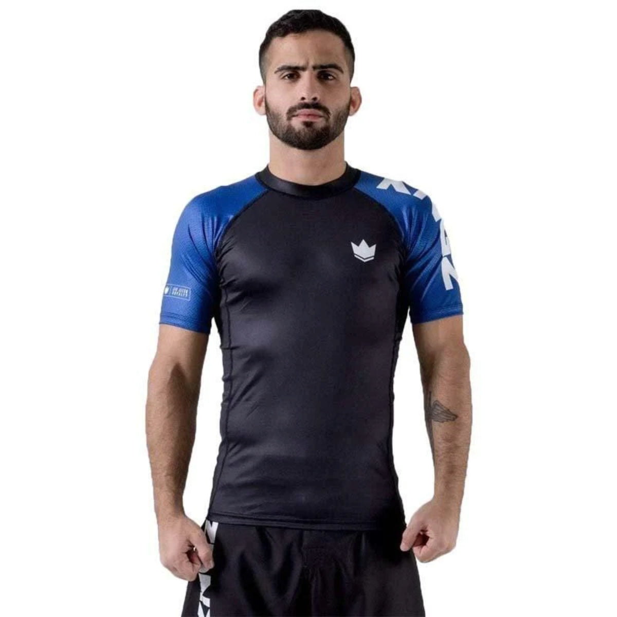 Dominieren Sie die Matte stilvoll und bequem mit dem Blue Kingz Ranged Performance Short Sleeve Rashguard. Erhöhen Sie Ihr Kampfsportlerlebnis mit dieser verbesserten Version des klassischen Rangleiters von Kingz.
