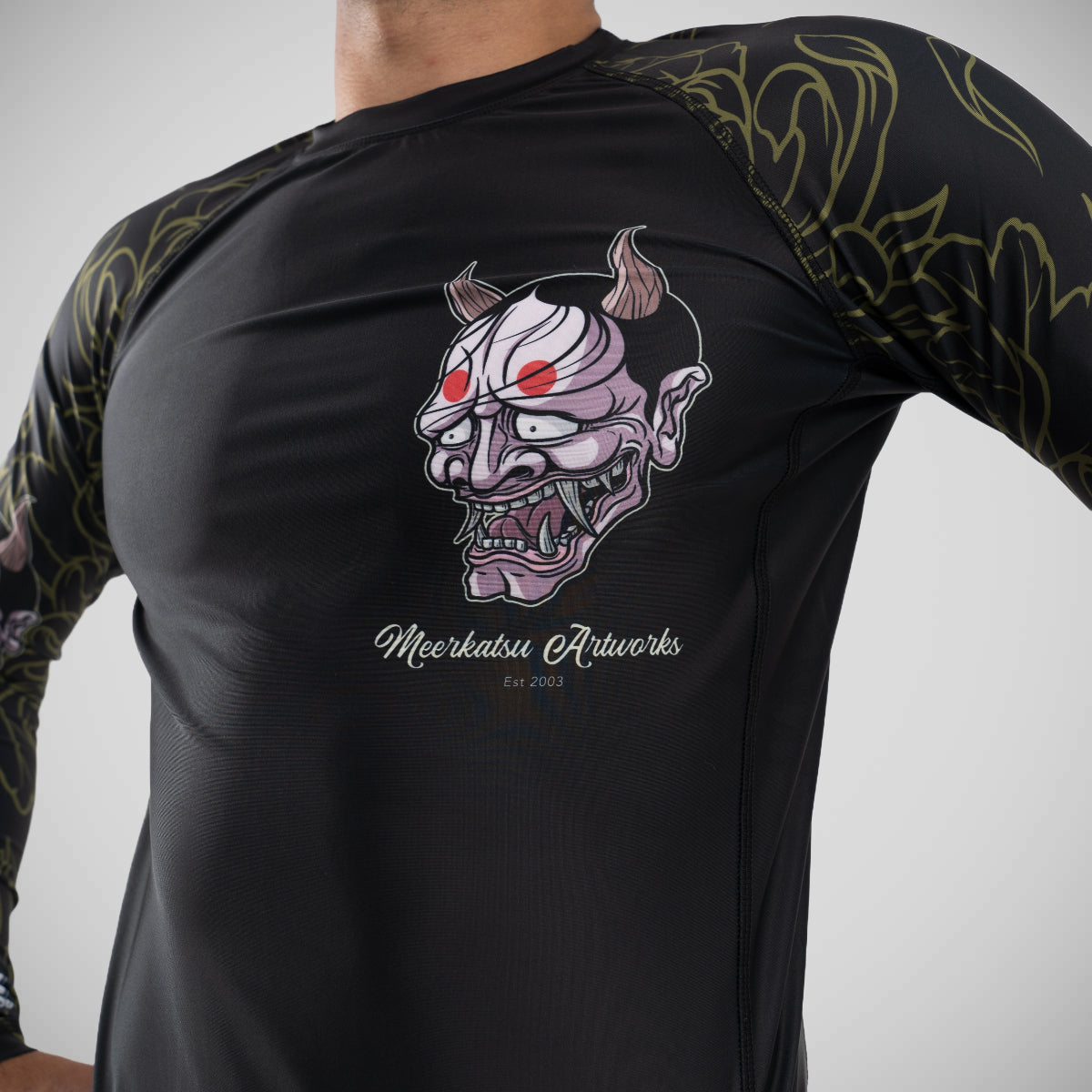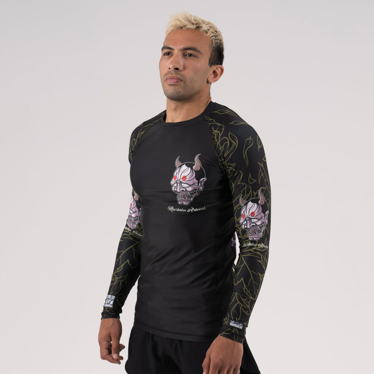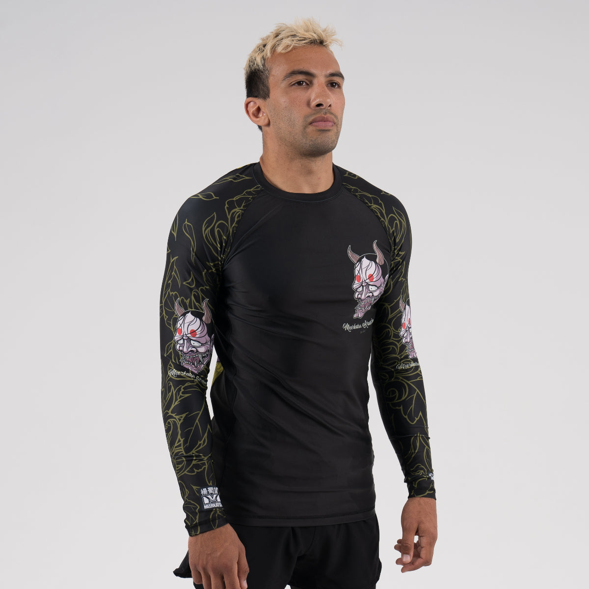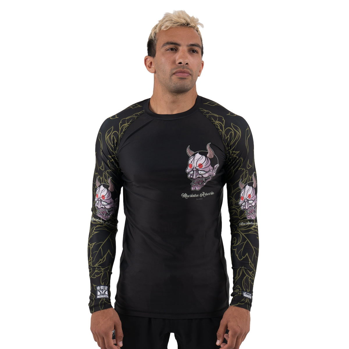 Egal, ob Sie ein erfahrener Kampfkünstler sind oder gerade mit Ihrer Reise beginnen, die lachende Hannya Long Sleeve Rash Guard ist eine kraftvolle Verschmelzung von Stil, Tradition und Leistung.