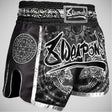 Das Schwarze vorstellen 8 Weapons Sak Yant Tigers Carbon Muay Thai Shorts - Eine moderne Wendung auf der thailändischen Boxausrüstung, die das Erbe der triumphierendsten 8 Waffenshorts trägt.