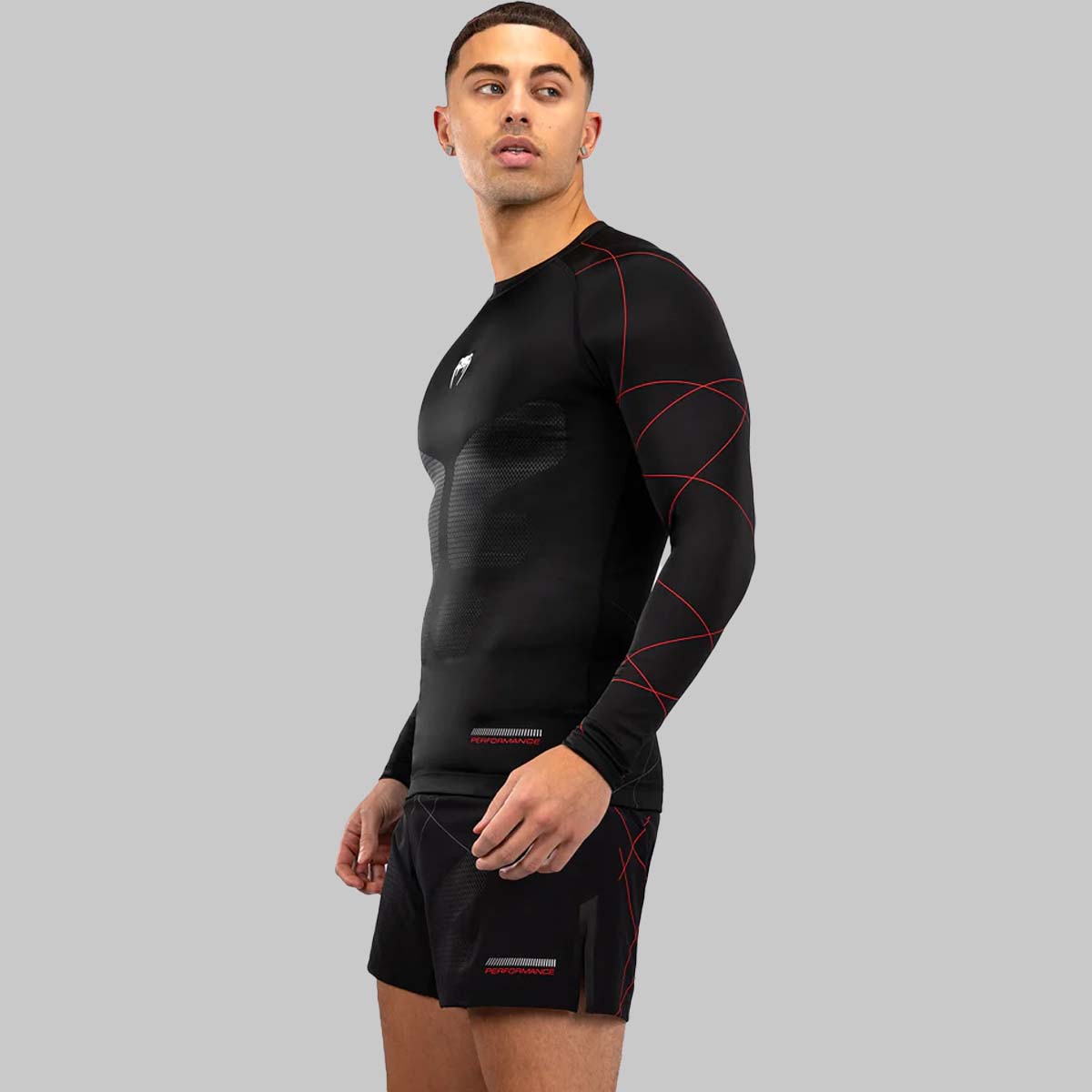 El Venum Rashguard de manga larga táctica XT Men: Black/Fire Red está diseñado para atletas que entrenan con precisión e intensidad implacable. Sirviendo como una segunda piel, proporciona protección contra lesiones y libertad de movimiento durante el no GI jiu-jitsu y la lucha. Su tecnología de compresión también ayuda a fomentar la recuperación muscular.