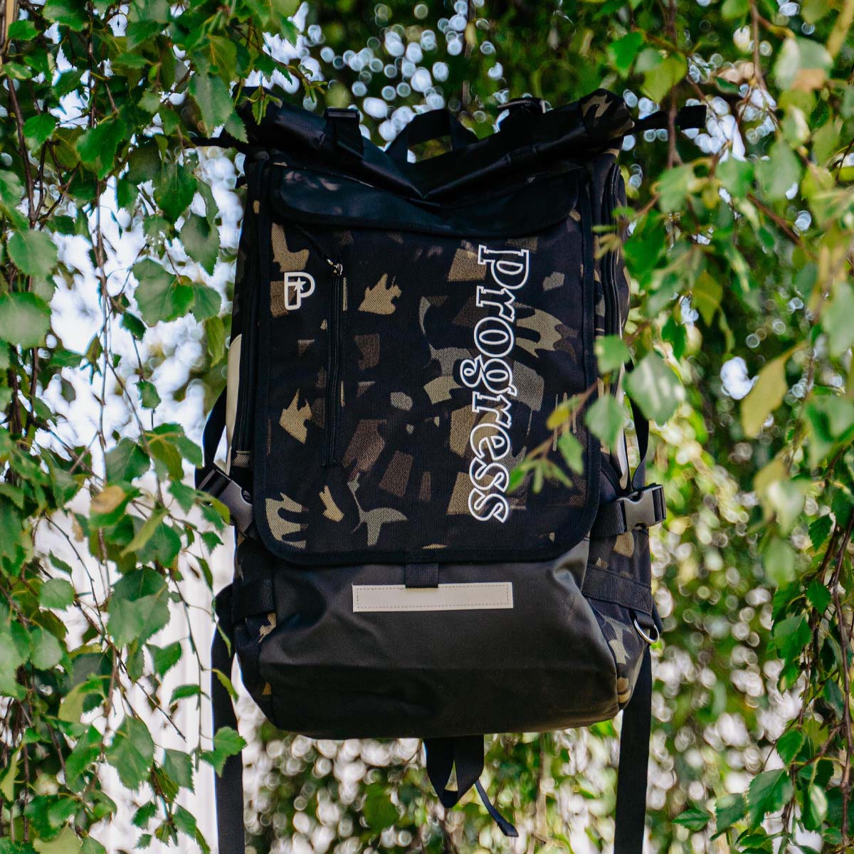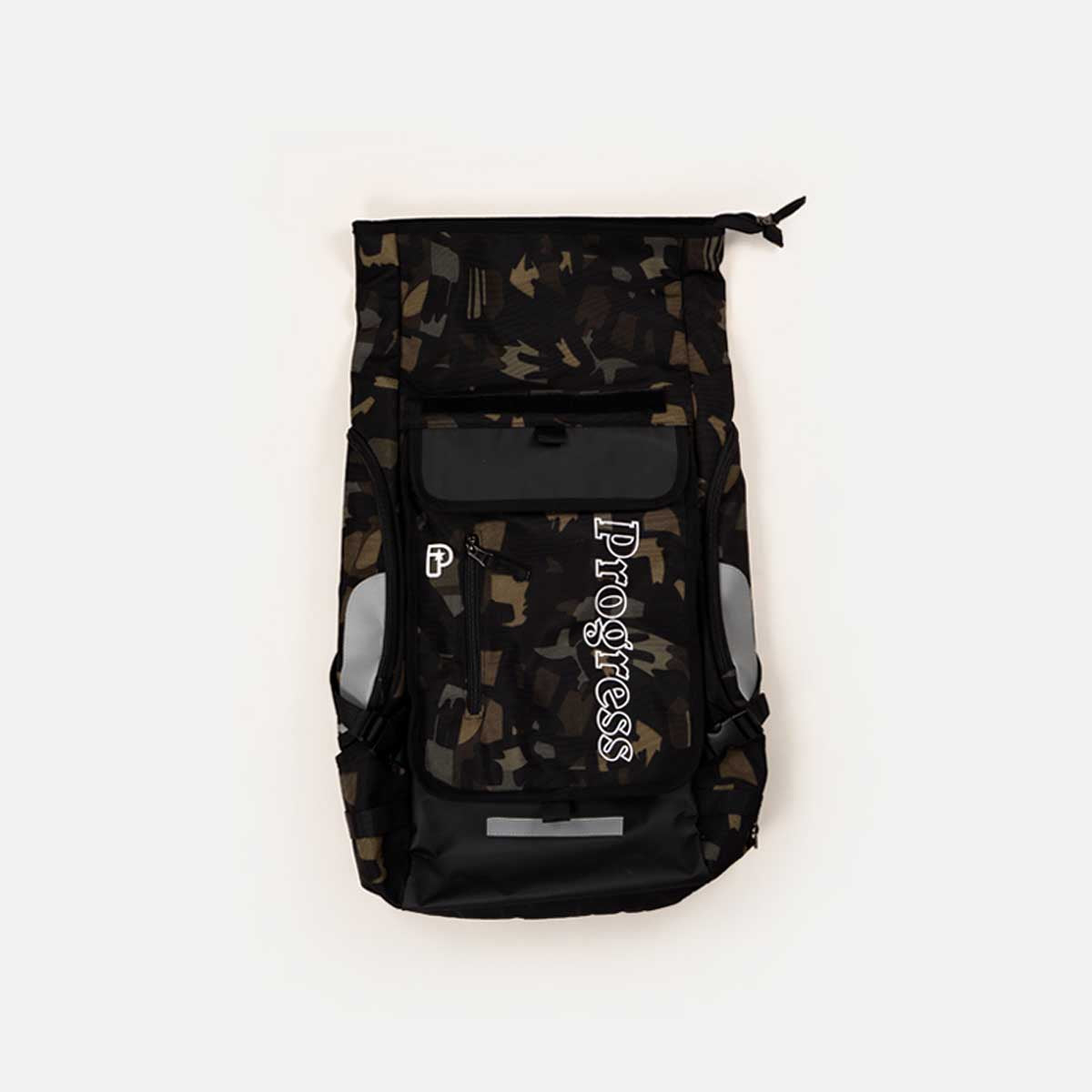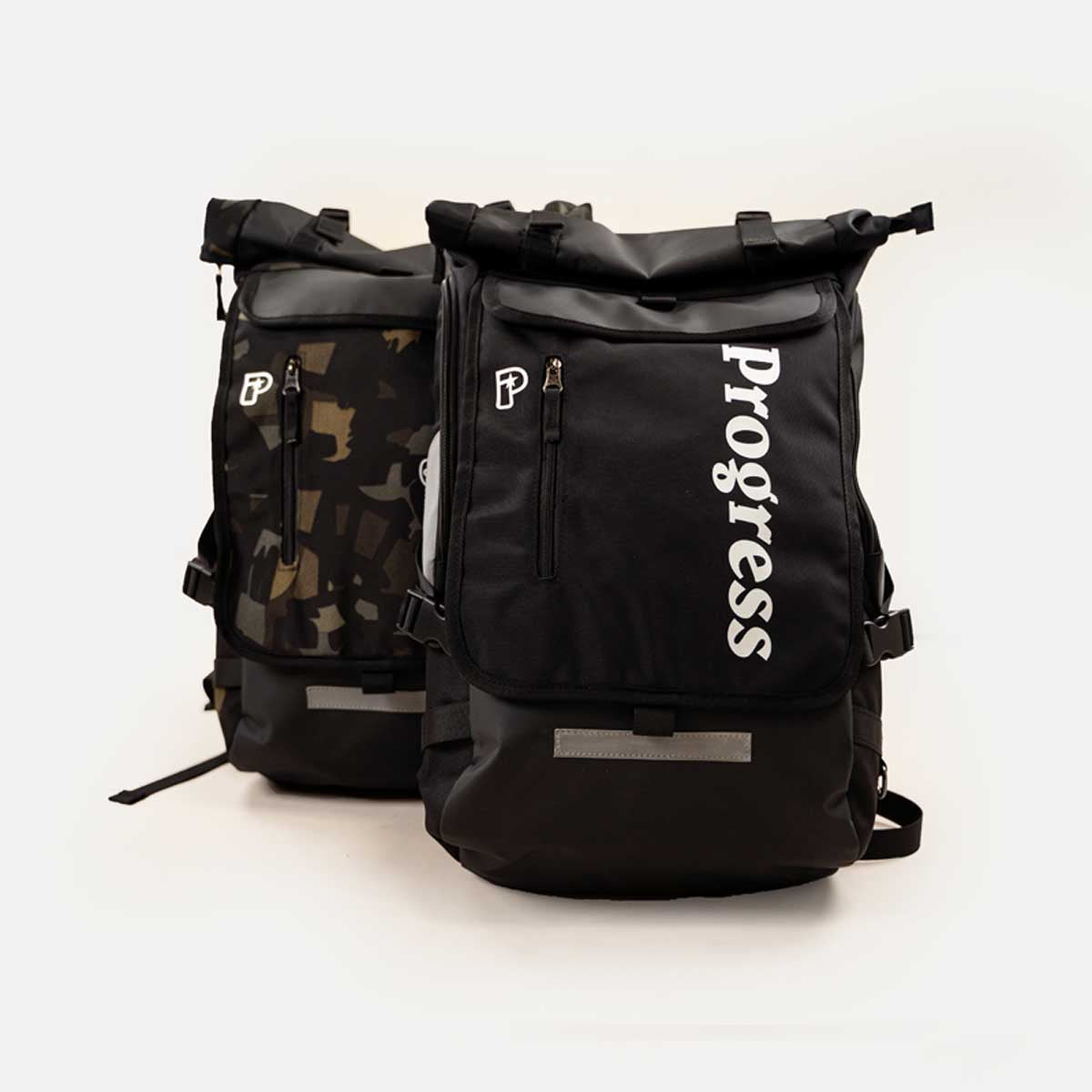 हमारा पहला बैकपैक, ब्लैक या कैमो में उपलब्ध है।