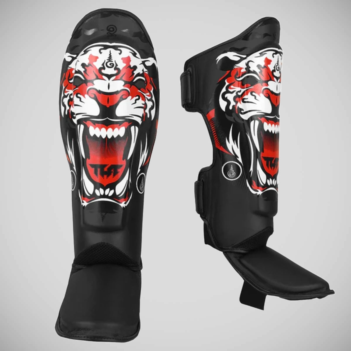 टफ स्पोर्ट ब्लैक टाइगर मय थाई शिन पैड्स लैंड के साथ गियर हर किक परंपरा की शक्ति के साथ गूंजता है।
