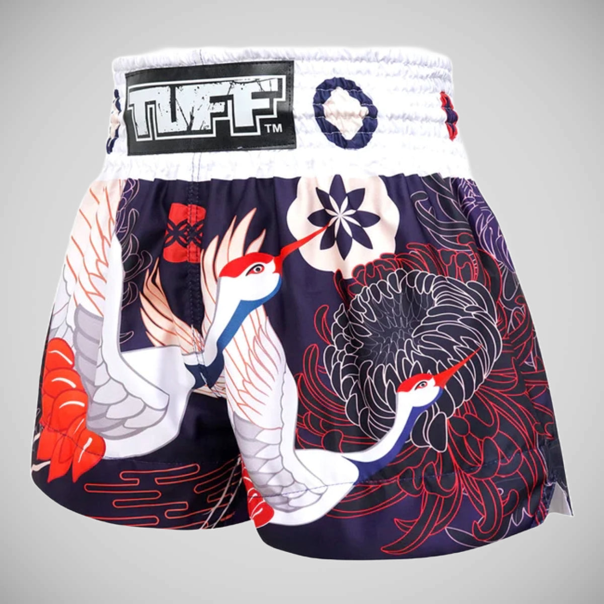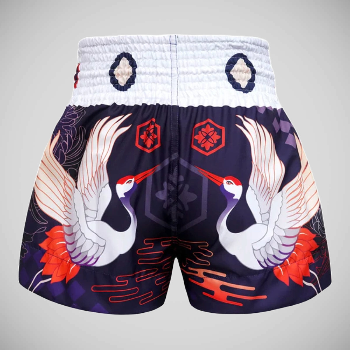 टफ स्पोर्ट MS639 नेवी ब्लू जापानी ड्राइंग क्रेन बर्ड मय थाई शॉर्ट्स के साथ क्रेन की शक्ति को मूर्त रूप दें।