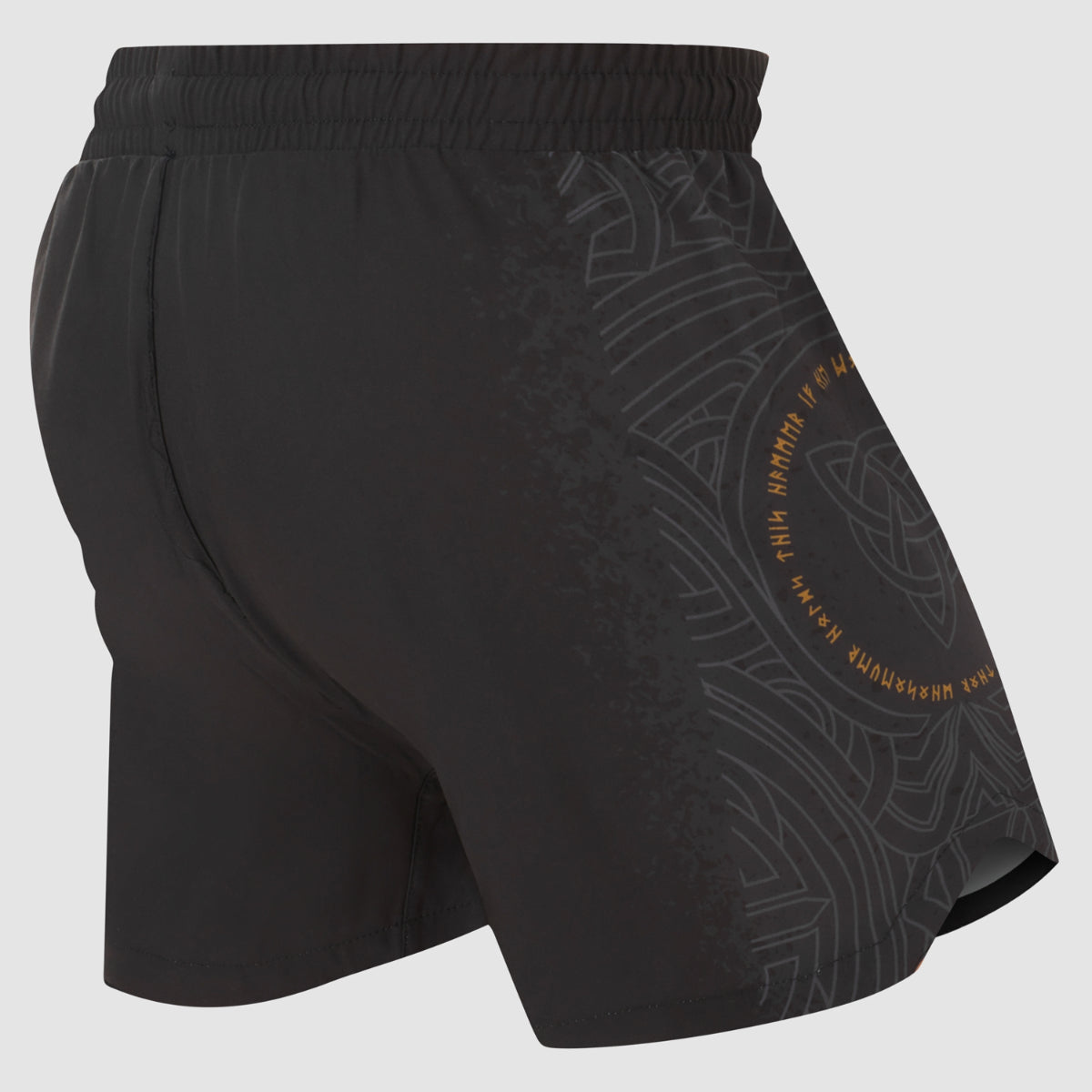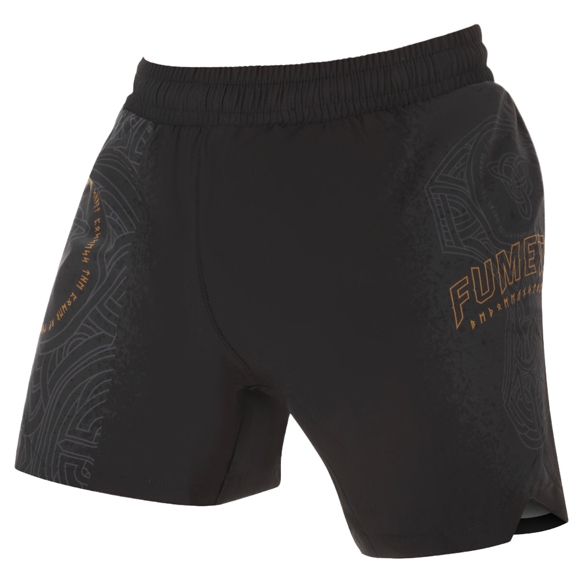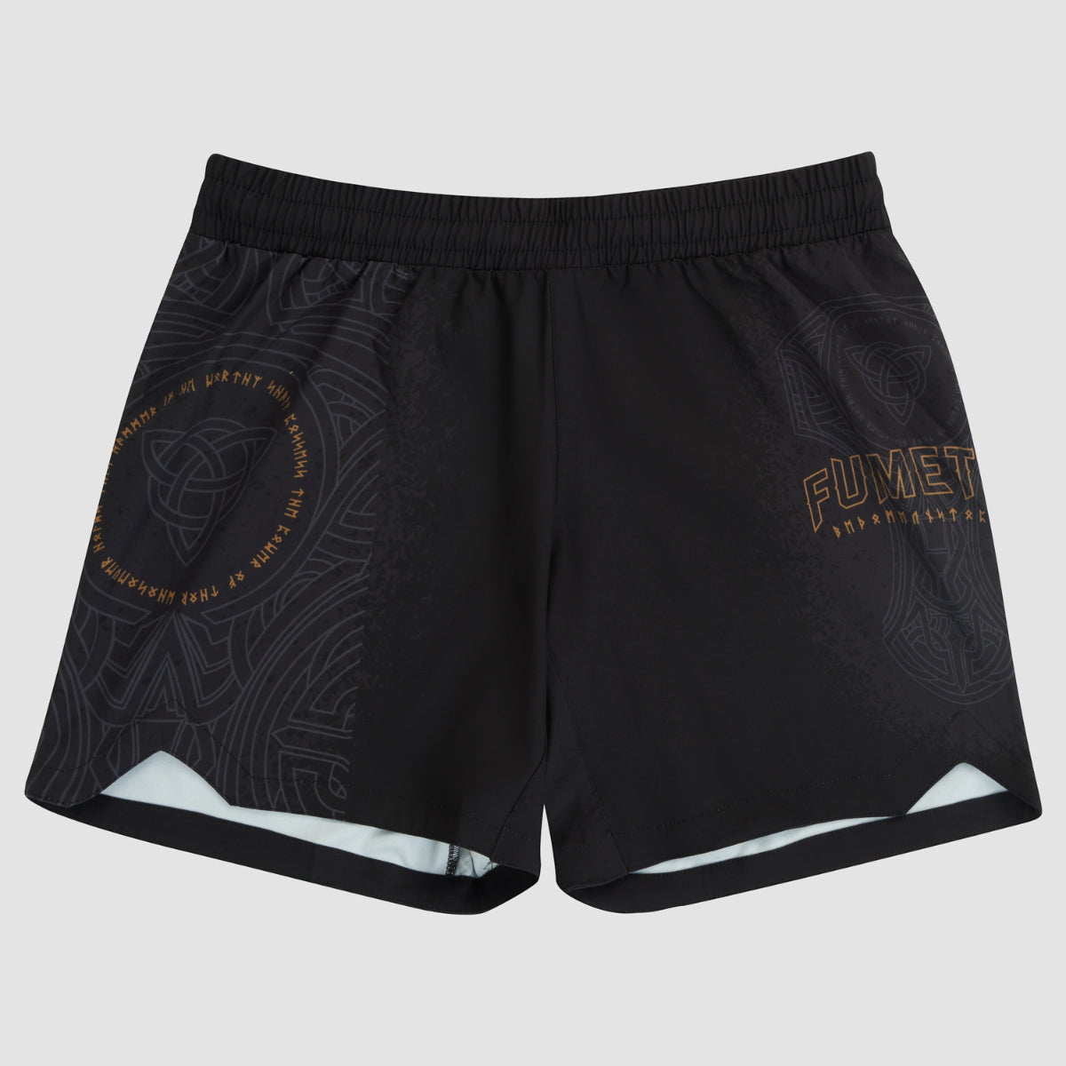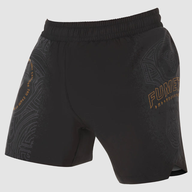 ब्लैक/कांस्य फ्यूमेट्सु मोजोलनिर वी-लाइट फाइट शॉर्ट्स का परिचय: नॉर्स पौराणिक कथाओं की शक्ति का उपयोग करें!