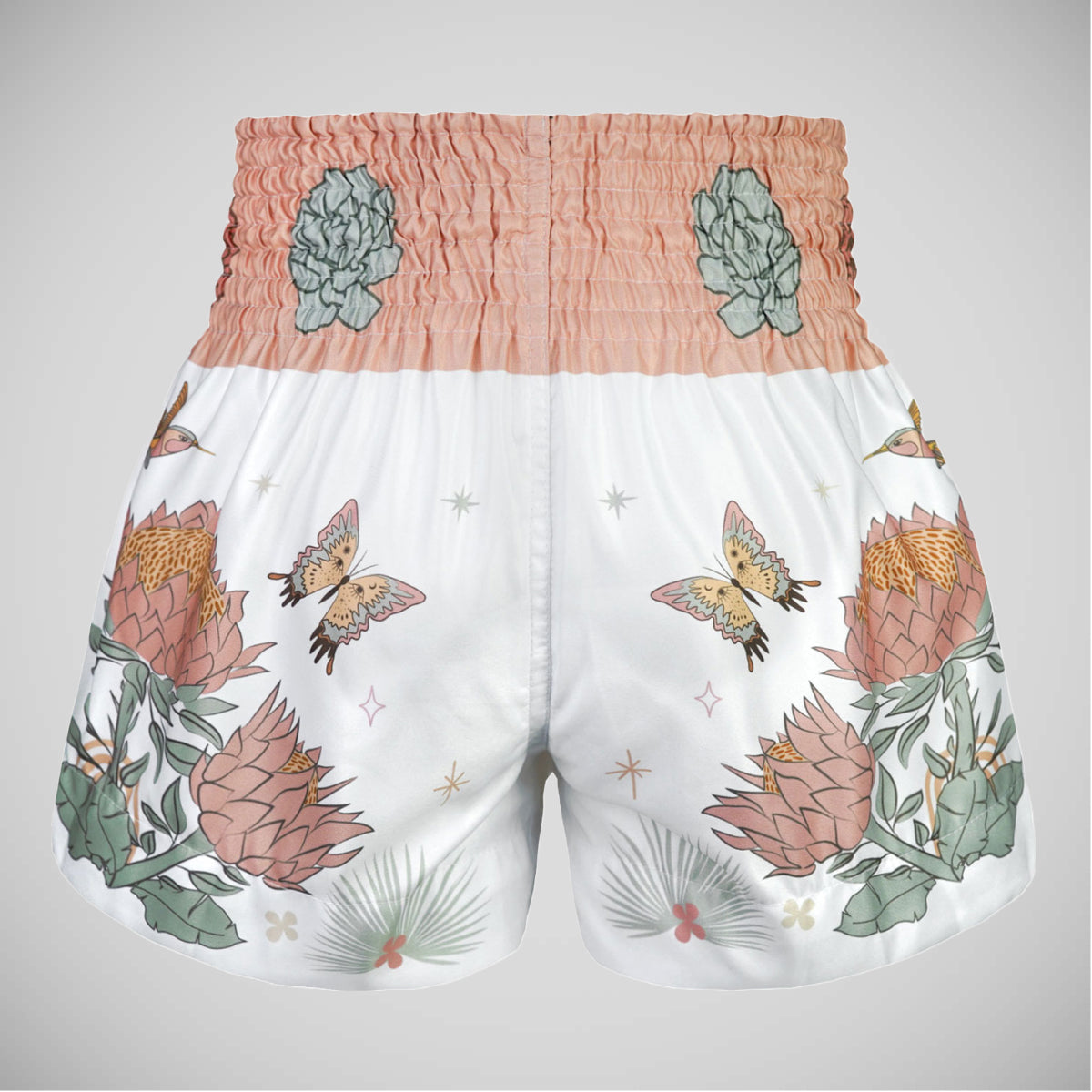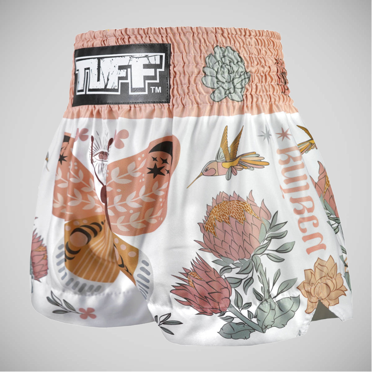 ホワイトタフスポーツMS678の紹介希望ムエタイショーツの起源 - 希望の起源、美しさ、変容、そしてムエタイの不屈の精神。蝶は、その魅惑的なライフサイクルで、決してあきらめず、自分自身のより良いバージョンとして出現することを決して行わない強力なリマインダーとして機能します。