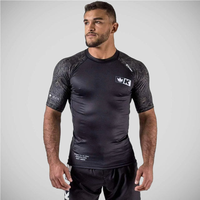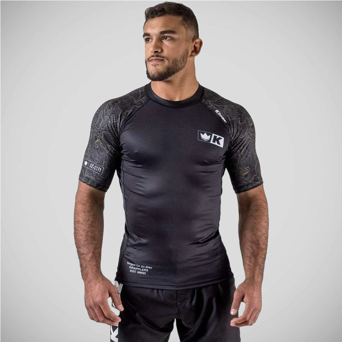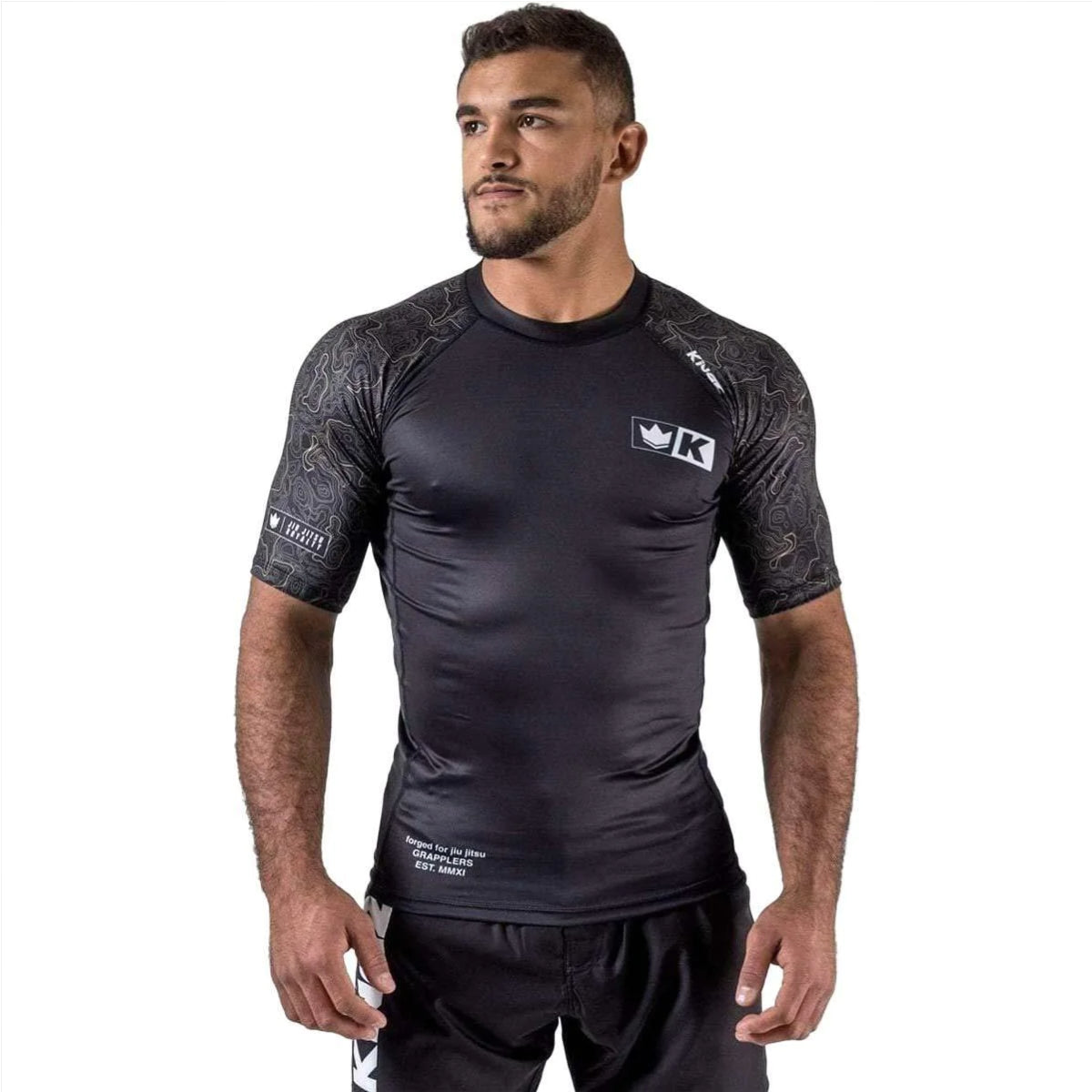 ブラックキングアペックス半袖ラッシュガードで、比類のないスタイルとパフォーマンスを備えた柔術サミットを征服してください。