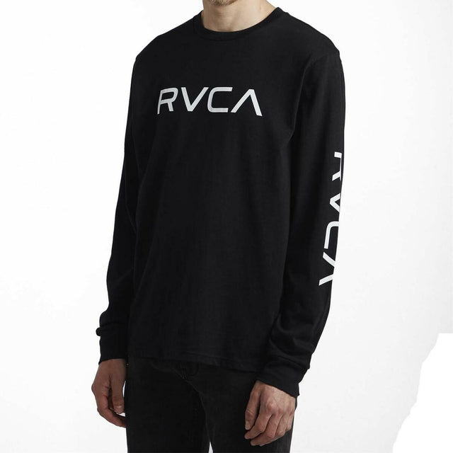 大きなRVCAロングスリーブTシャツには、標準的なフィット感のあるチェストプリントとスリーブプリントの両方があり、100%の綿で作られています。