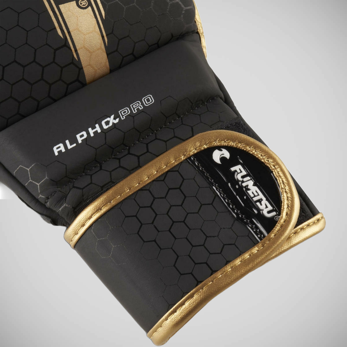 Black/Gold Fumetsu Alpha Pro MMA 스파링 장갑은 프리미엄 Cowhide 가죽으로 제작되어 비교할 수없는 품질과 내구성을 제공합니다. 그들은 최대의 편안함과 보호를 제공하는 더블 패딩 된 스트라이킹 공간이있는 열린 팜 디자인을 가지고 있으며, 후크 및 루프 클로저는 안전한 착용감을 보장합니다.