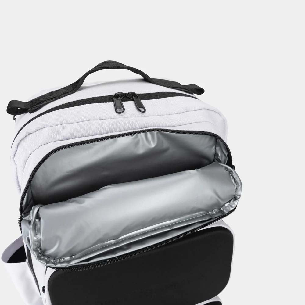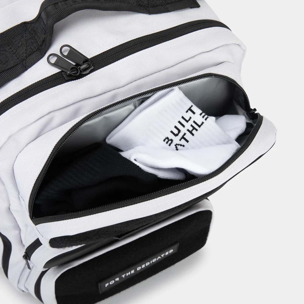 Den bygde for idrettsutøvere Elite 35L bakpakke er designet spesielt for de som krever effektivitet, bekvemmelighet og stil. Ikke bare for treningsstudioet Denne ryggsekken har flere rom som holder det viktigste organisert og tilgjengelig. Rom inkluderer en hard etui foran lommen og en termoforet frontlomme. De 2 sideflaskeholderne er i stand til å holde en 1000 ml proteinshaker og en 1000 ml vannflaske. I tillegg til 2 våte pose foret lommer både eksterne og indre.