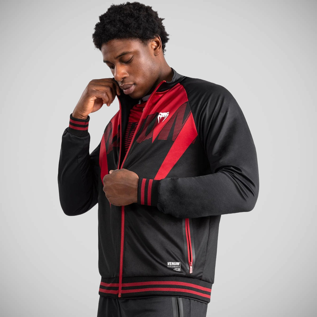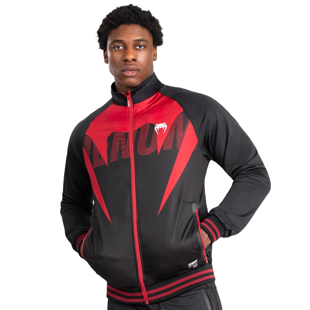 Venum adrenalin herresporjakke, inspirert av topp ytelse, har åpne lommer og en krage med høy hals. Denne fullsypet jakken skiller seg ut med sin rød-svarte design og venum-logoer på brystet og ryggen. Par det med andre gjenstander fra adrenalin -samlingen for et sammenhengende utseende.