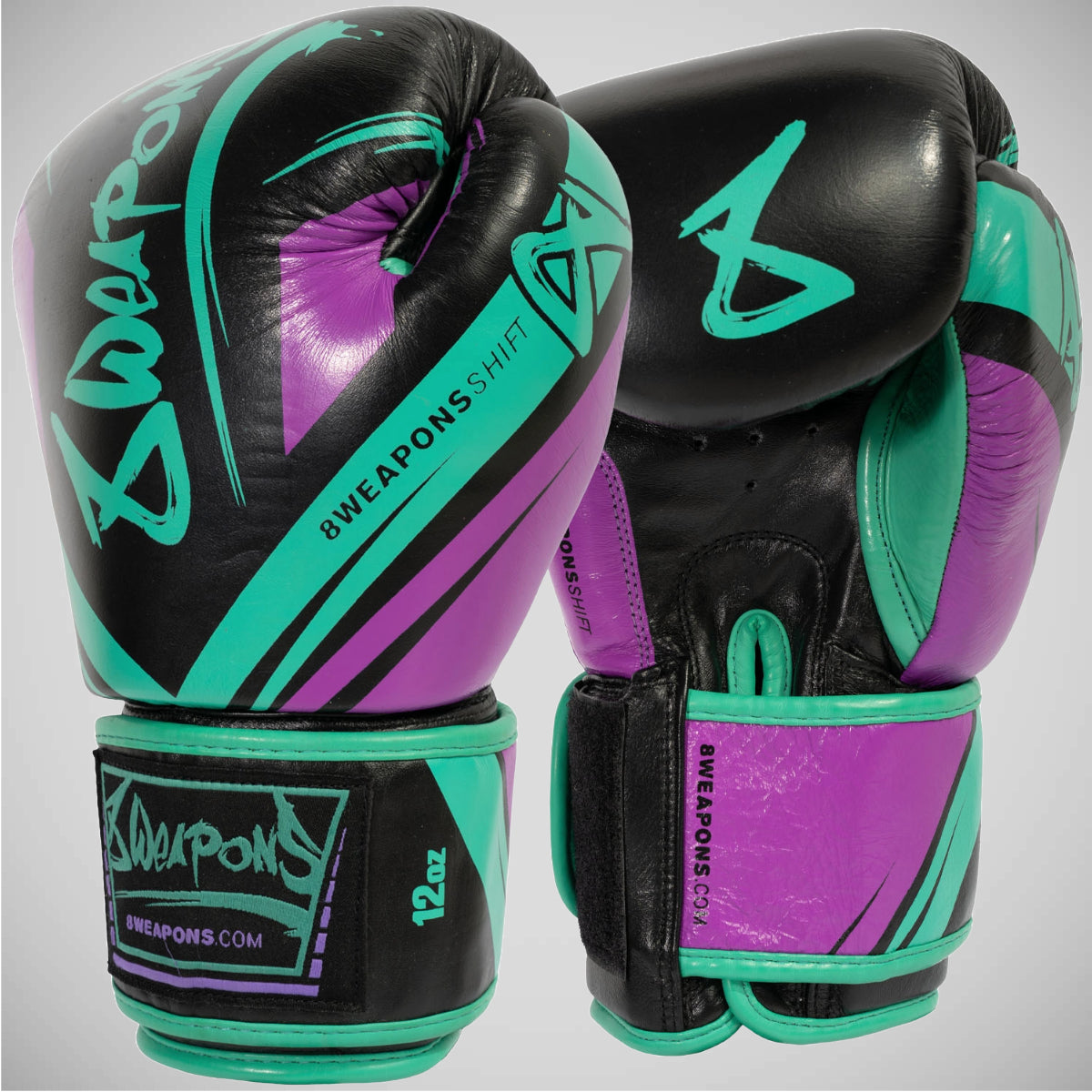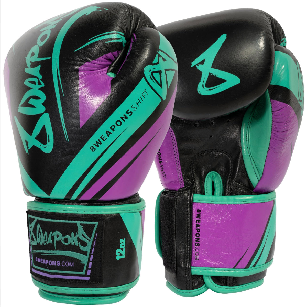 Vi introduserer de 8 våpnene skifter cyberboksingshansker i slående svart/rosa/grønn!