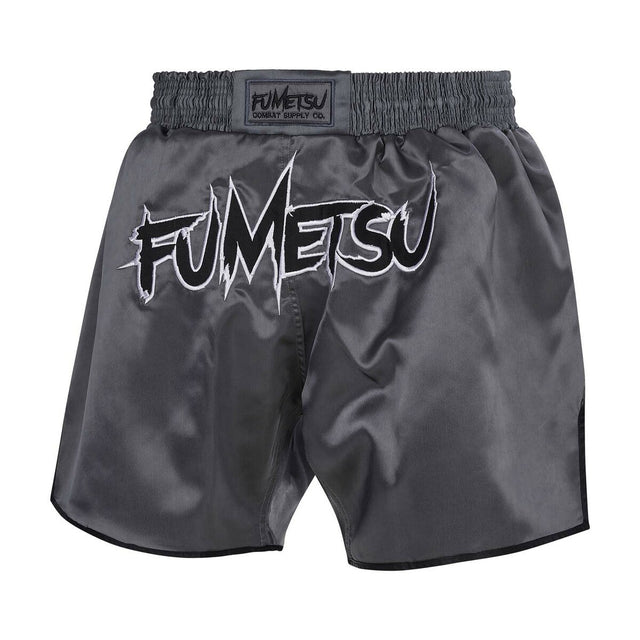 Szare/czarne spodenki Fumetsu Combat Muay Thai wykonane są w tradycyjnym tajskim stylu z satynowego materiału i wysokiej jakości haftowanym logo Fumetsu. Szeroki elastyczny pas utrzymuje te spodenki bezpiecznie na biodrach, a boczne rozcięcia zapewniają pełen zakres ruchu.