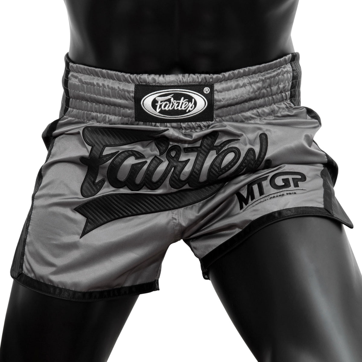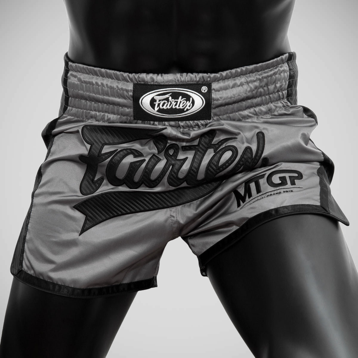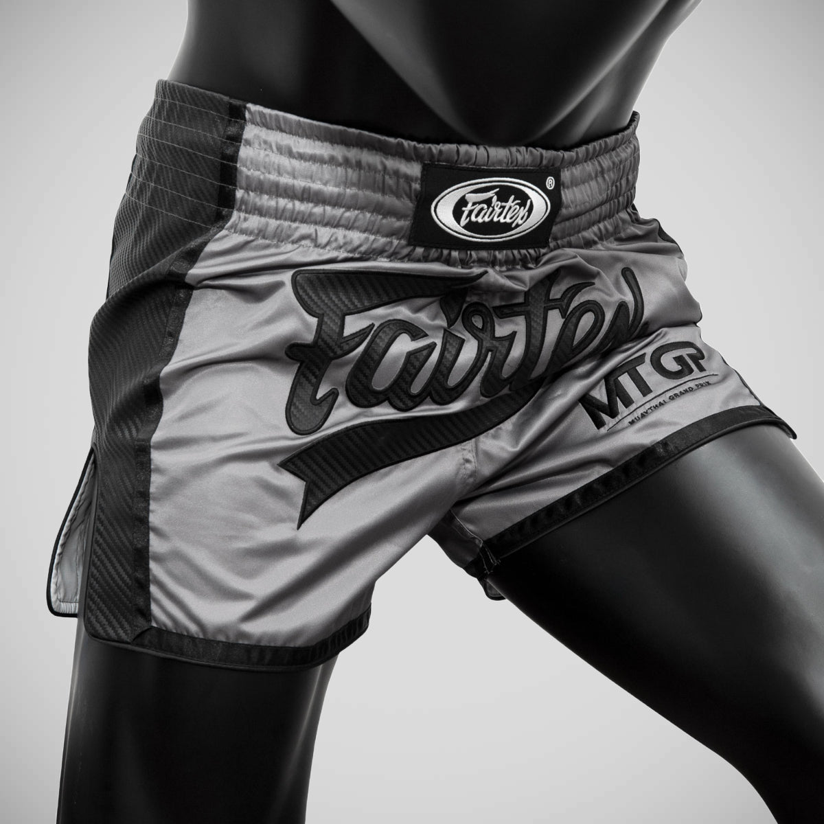 Introducing the only shorts Officially licensed Muay Thai Grand Prix (MTGP) shorts, the Grey/Black Fairtex X MTGP Muay Thai Shorts.