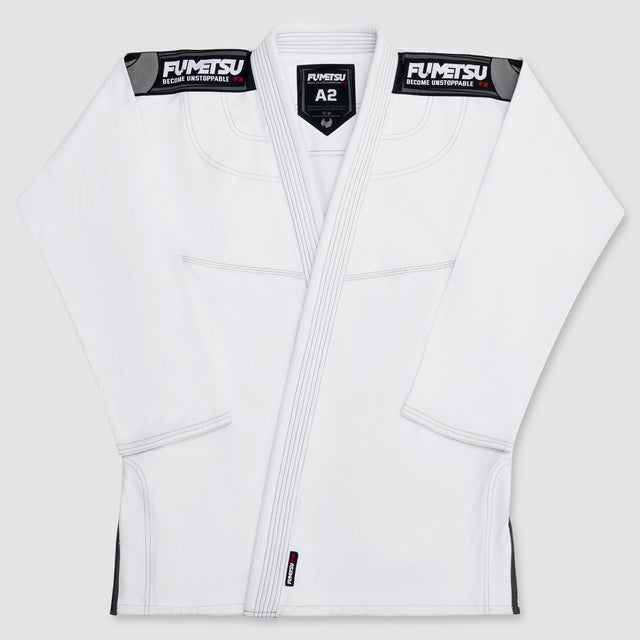 Prepare to take your martial arts journey to the next level with this must-have gear the legendary White Fumetsu Shield MK2 Kids BJJ Gi. This MK2 version is packed with updated Fumetsu branding and custom interior taping, making it a top choice for beginners and seasoned athletes alike. And as a bonus, when you get the Fumetsu Shield Jiu Jitsu Gi, you'll also receive a complimentary white belt to dive right into your training.