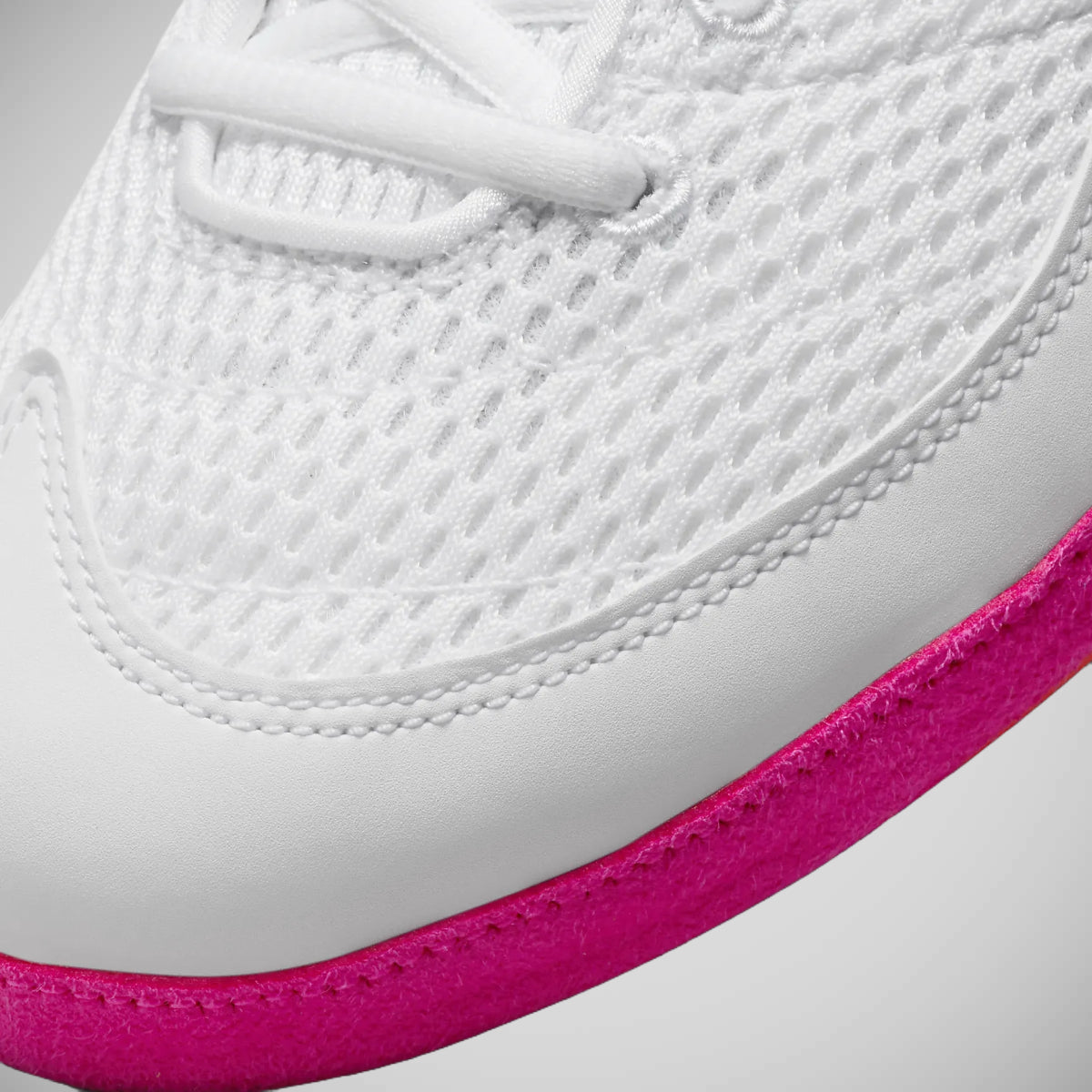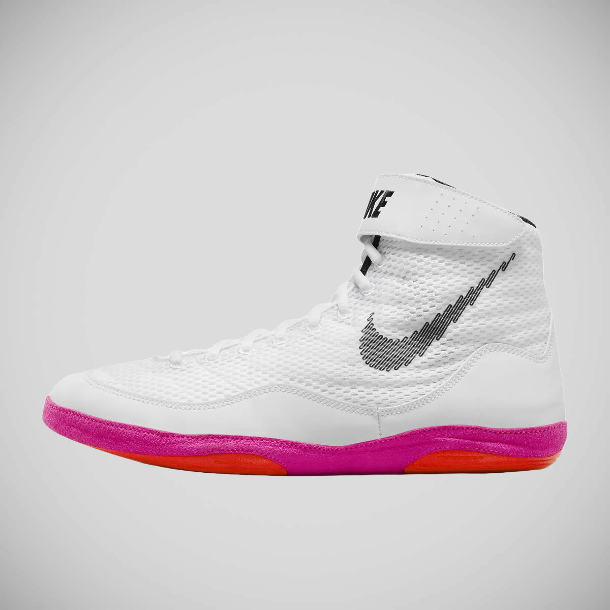 Dominate the mat with the White/Black/Pink Nike Inflict SE Wrestling Boots. Engineered with durable synthetic overlays, they provide unbeatable support and stability, ensuring every move is executed flawlessly