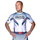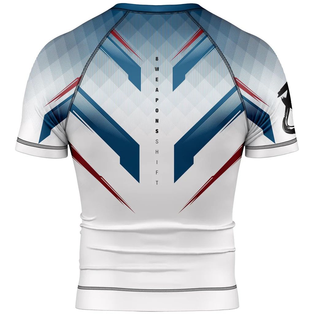 Treinar sem compromisso no 8 Weapons Proteção de erupção cutânea - Branco/Marinha/Vermelho. Disponível agora no Made4Fighters.