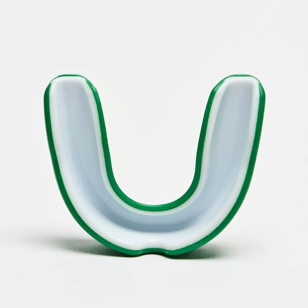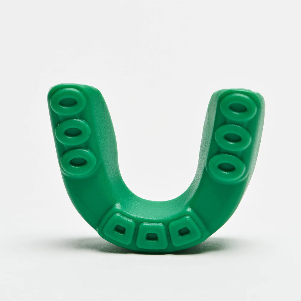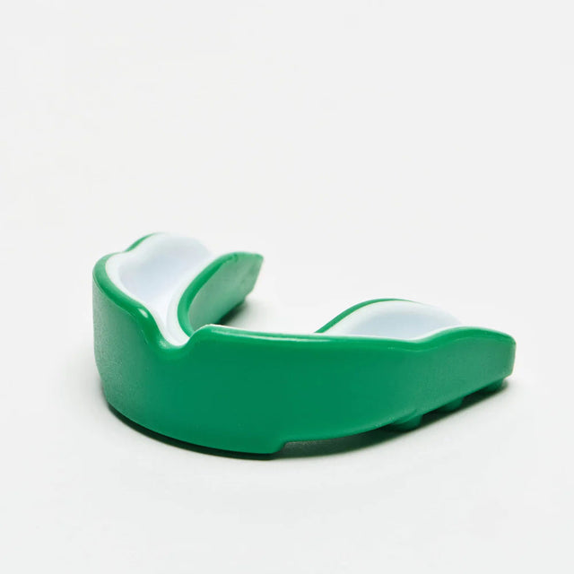 The Safe Guard PD512 mouthguard in green offers the same robust protection as its black counterpart. Its dual-layer construction absorbs impact effectively, while the green design adds a vibrant touch. Ideal for athletes seeking reliable oral protection with a pop of colour.