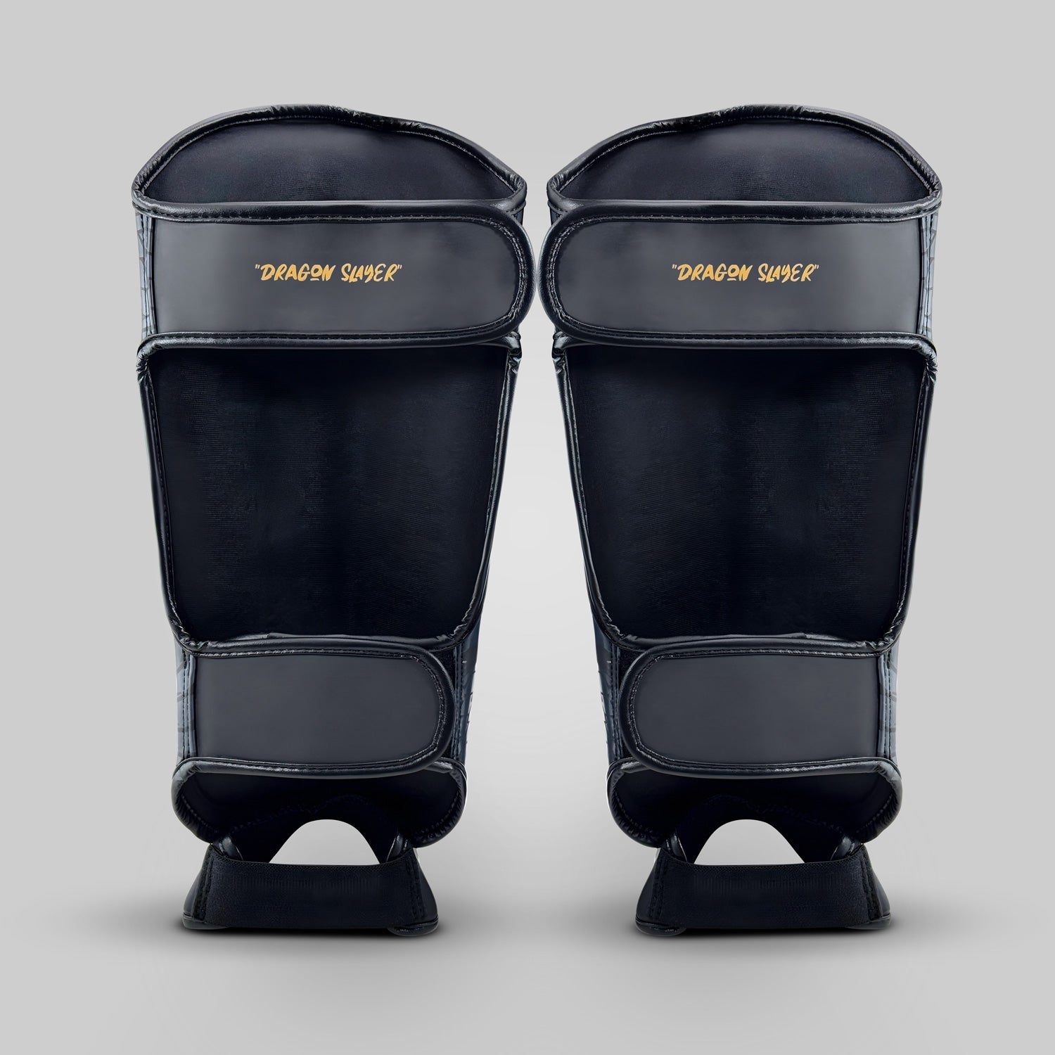 Skydda dina ben i stil med Fumetsu Dragon Slayer Shin Guards Black/Gold. Byggda för kampsportkonstnärer som förväntar sig komfort och tillförlitlighet, erbjuder dessa skenvakter fullständig skinn- och instrumenttäckning, förstärkt skydd där du behöver det mest och en ergonomisk krökt form som naturligt passar benen.