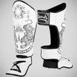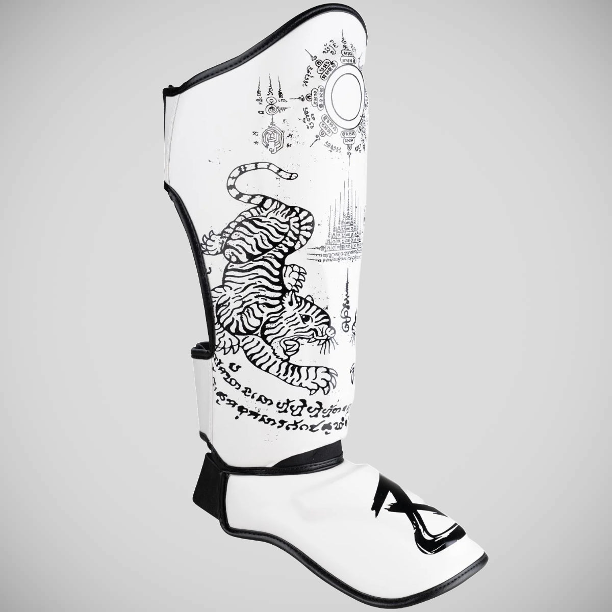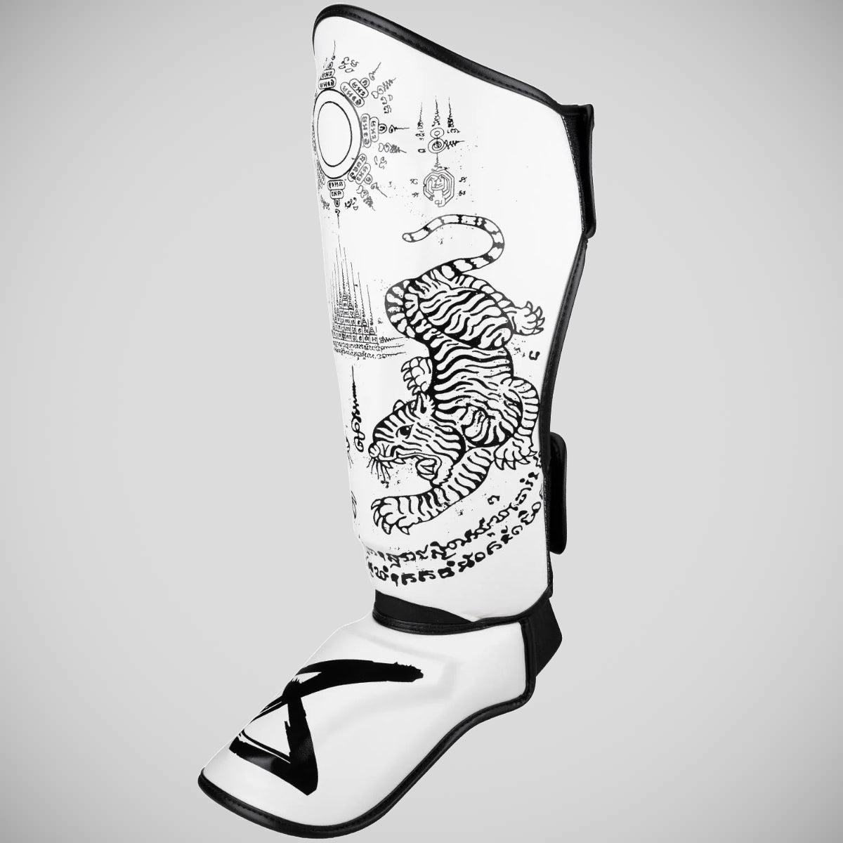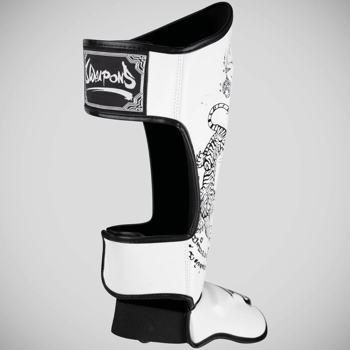 Güvenli bir uyum için, boks eldivenleri giyerken bile kolayca açılabilen ve kapatılabilen iki geniş kanca ve döngü bağlantı elemanı ekledik. Ek olarak, iki elastik bant koruyucuyu ayağın etrafında yerinde tutar. Ayrıca, ayak bölümüne ek esneklik sağlayarak bir neopren ek ile InsteP'e geçişi geliştirdik. 8 silah shin gardiyanları yüksek kaliteli sentetik deriden üretilir ve bir çift olarak gelir.
