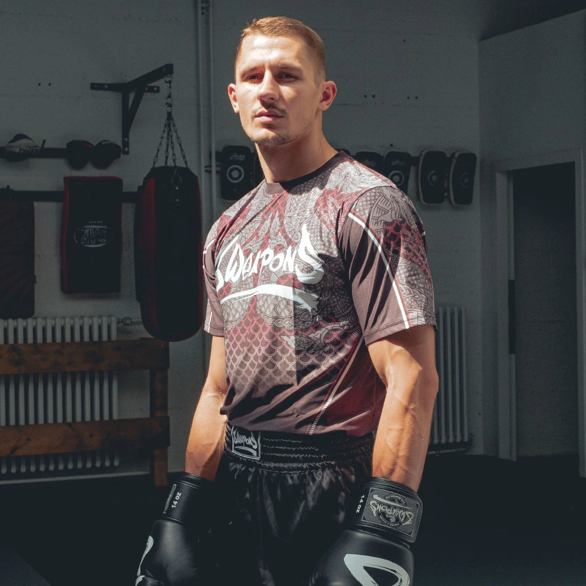 Siyah/kırmızı ile tanışmak 8 Silahlar Naga Yant Fonksiyonel T-Shirt, savaş sporlarını ciddiye alan savaşçılar için tasarlanmış bir yenilik güç merkezi.
