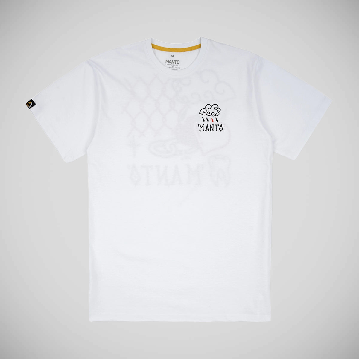 Beyaz Manto acı tatlı tişört, rahat bir uyum için% 100 pamuktan yapılmıştır. Bu temel parçaya şık bir dokunuş ekleyerek bir jakar "Manto" etiketine sahiptir.