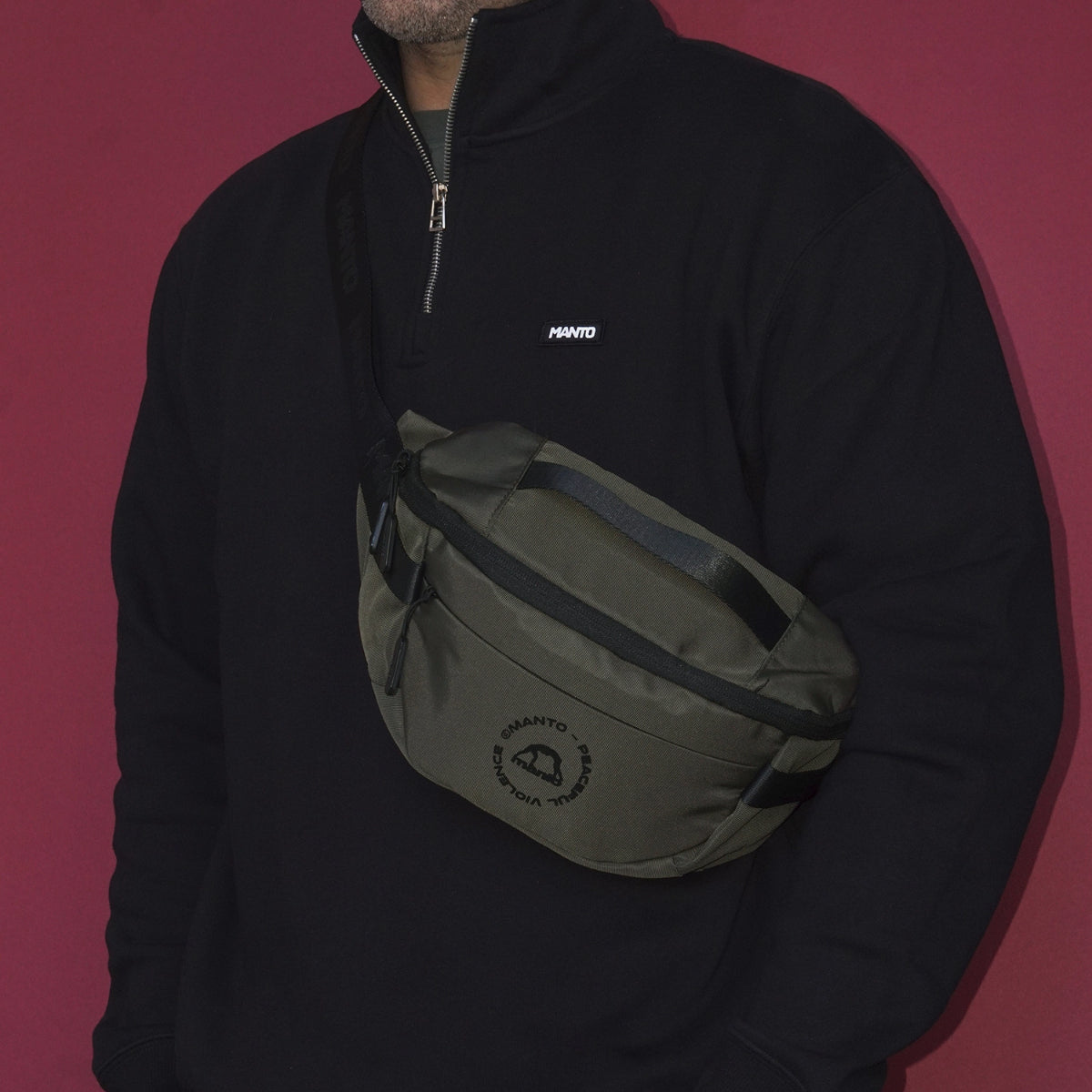 Haki'deki Manto Circle bel çantası, hareket halindeki kolaylık için ideal olan kompakt ve çok yönlü bir aksesuardır. İki dış cep ve içinde ek bir fermuarlı cep içeren, temeller için organize depolama sunar. Daha fazla konfor için örgü sallanan bir arka panel ile bu bel çantası hem pratik hem de şıktır.