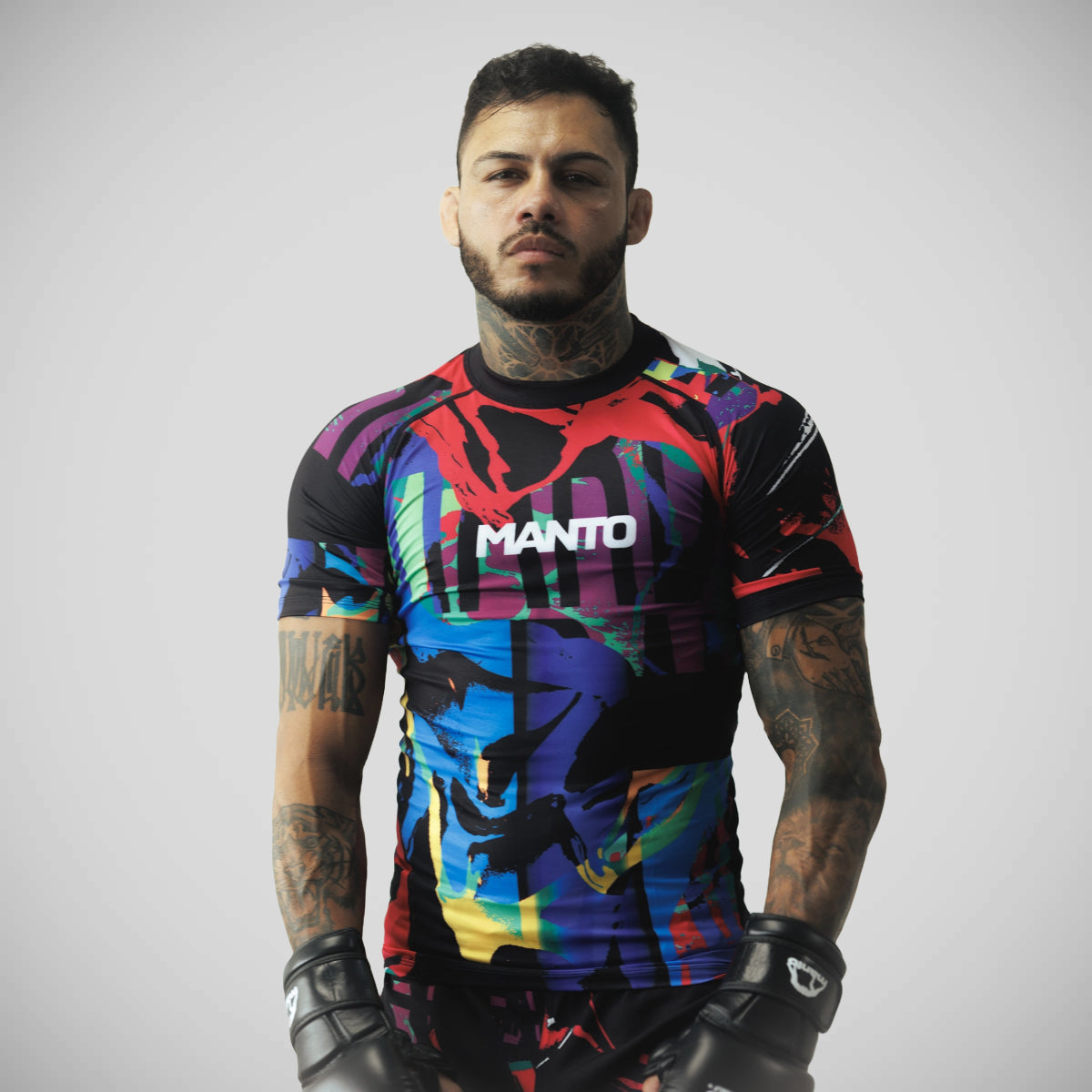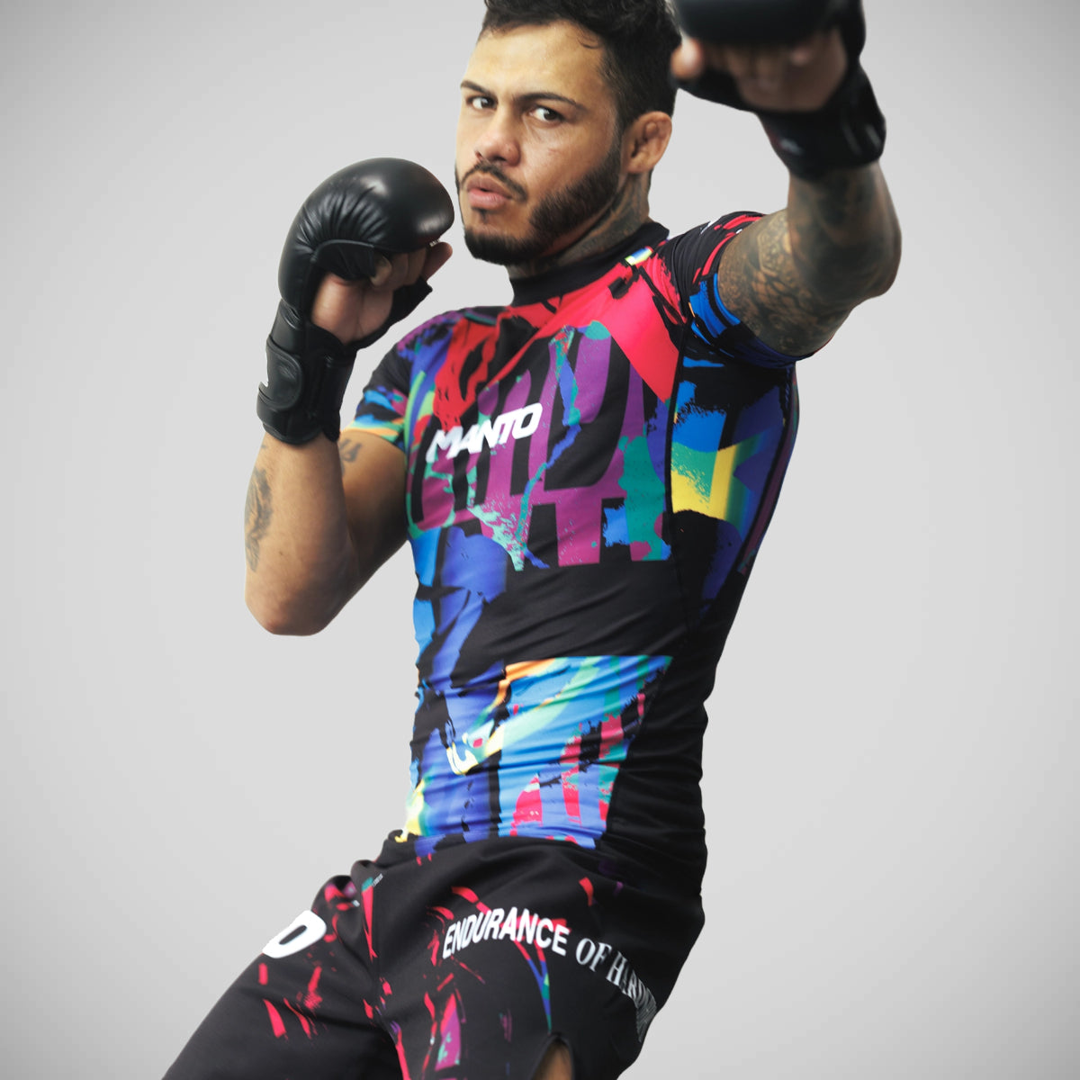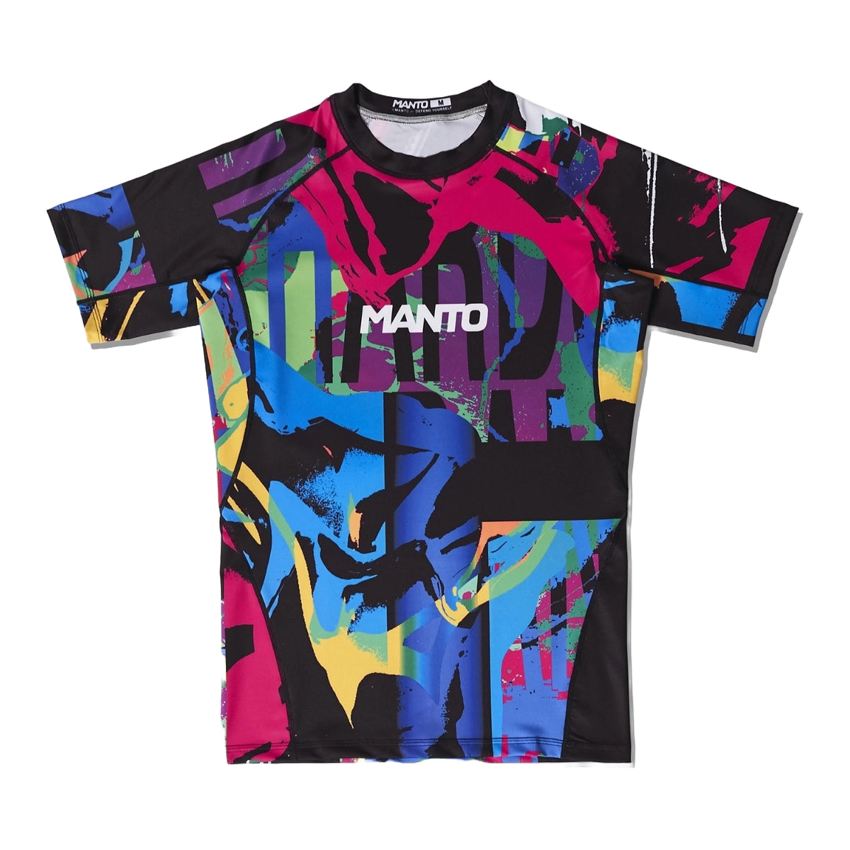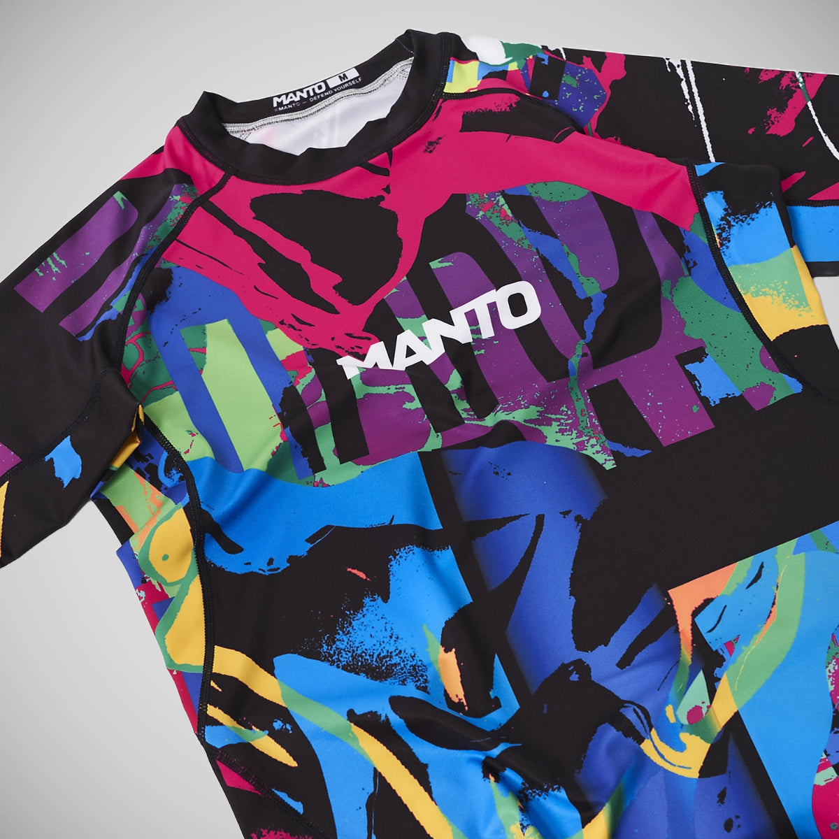 Antoni Starzyński ile işbirliği içinde tasarlanan Manto Rave Rash Guard Multoolour, dayanıklı 6 panelli bir yapıya sahip rahat, yakın oturan bir tasarım sunuyor. Düz, elastik dikişler cilt tahrişini önlerken, süblimasyon baskısı canlı tasarımın sağlam kalmasını sağlar. Esneklik ve dayanıklılık için% 84 polyester ve% 16 elastandan yapılmıştır.