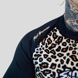 Glam-rock leopar baskısı ve kilitli uyumu ile bu döküntü koruması basınç altında performans gösterecek şekilde üretilmiştir. Performans poli-spandex karışımı size sınırsız hareket sağlarken, nefes alabilen örgü yan paneller hız ısındığında işleri serin tutar. Tamamen süblimlenmiş grafikler keskin kalır ve silikon bel bandı her şeyi yerinde tutar - yukarı çıkma, dikkat dağıtıcı değildir.