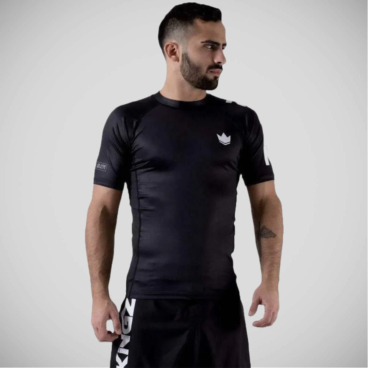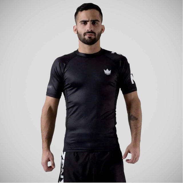 Доміную над килимком у стилі та комфорті за допомогою чорного Kingz, що займає рейтинг з коротким рукавом Rashguard. Підніміть свій досвід бойових спорту за допомогою цієї модернізованої версії класичного рейтингу Rashguard від Kingz.