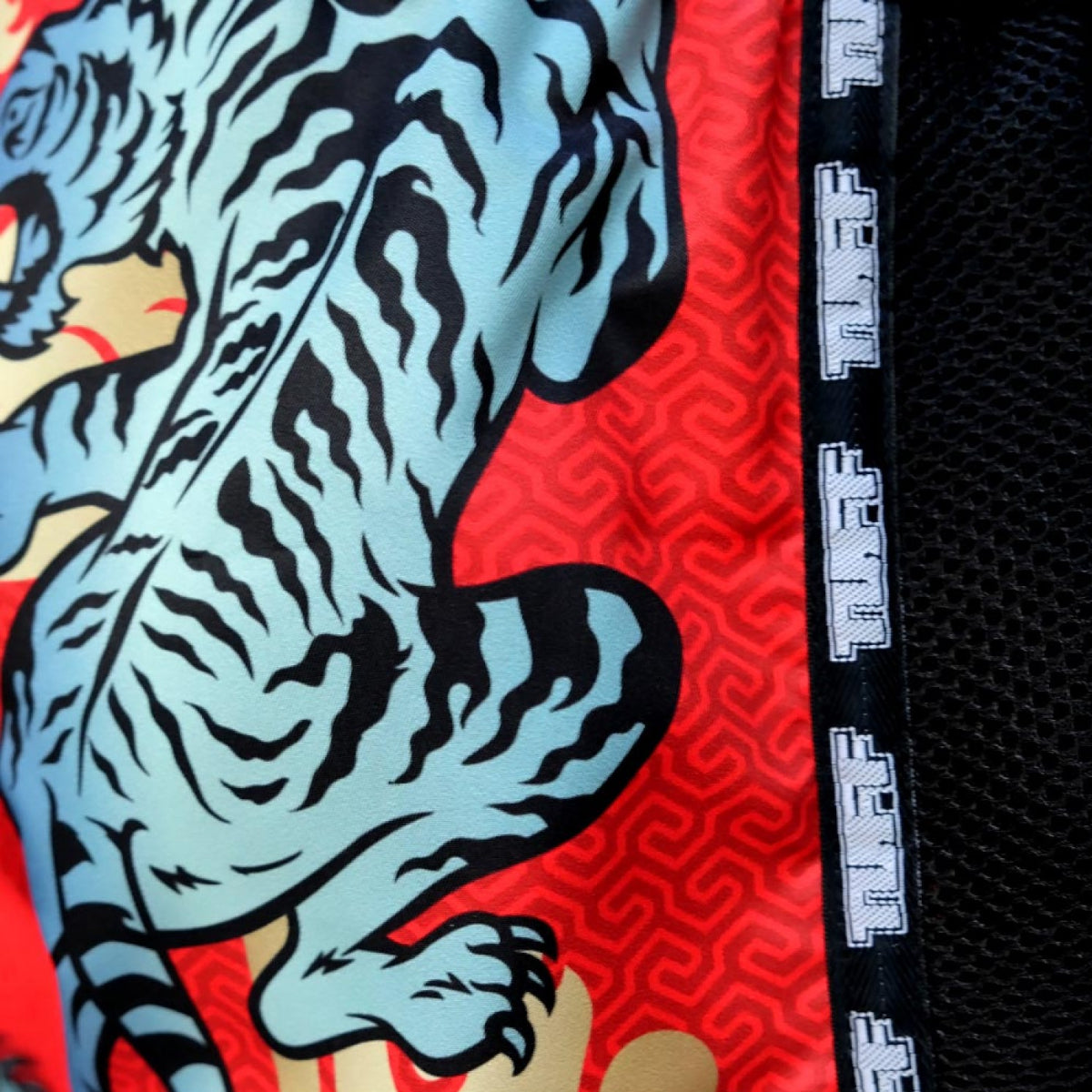 用MRS303 Tuff Muay Thai Shorts -Retro风格的红色残酷老虎拥抱Muay Thai的遗产。 穿着武术史,充满信心地统治着戒指。